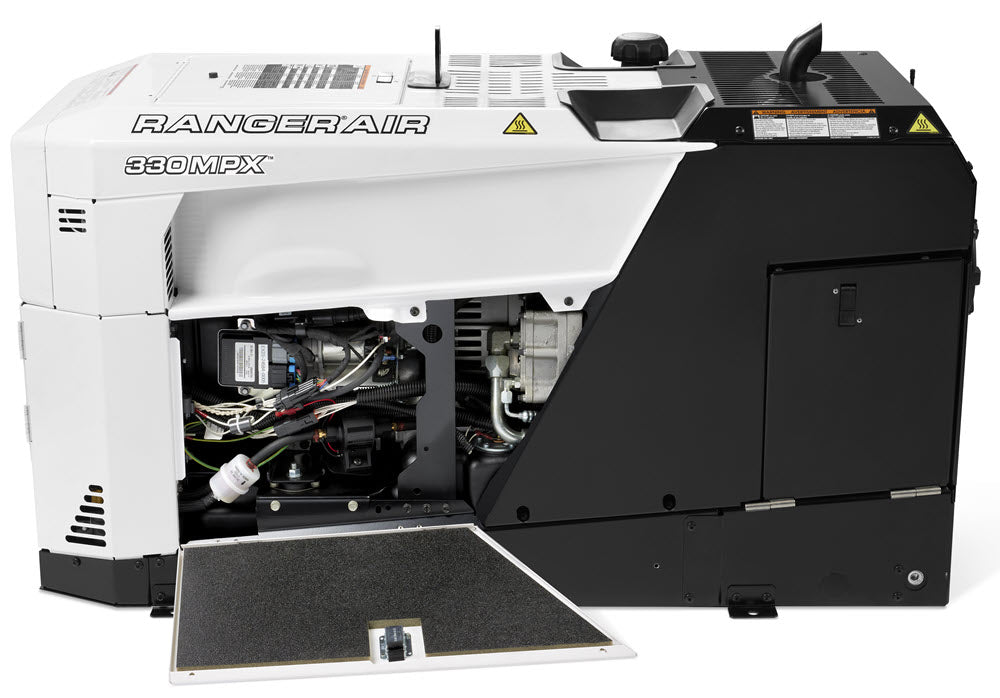 The Lincoln® Ranger® Air 330MPX™ is an 11,500 watt AC generator and 330 amp multi-process DC engine driven welder, that comes complete with a built-in air compressor.