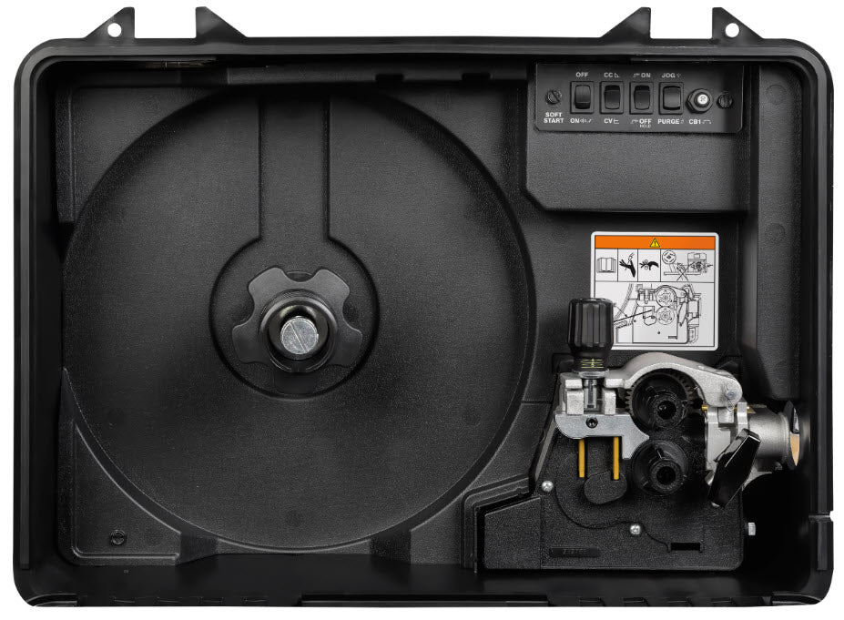 The ArcReach® Suitcase® 12 Heavy Duty wire feeder has a 450 amp welding capacity and handles welding wire spools up to 45 pounds. It is extremely rugged and can be taken just about anywhere. It features an industrial wire feed speed control, wire speed dual schedule and improved wire delivery system. Consistent wire feed speeds and tough polypropylene shell make the SuitCase 12 HD the rugged, reliable choice. It comes complete with 3/32 dia. drive rolls.