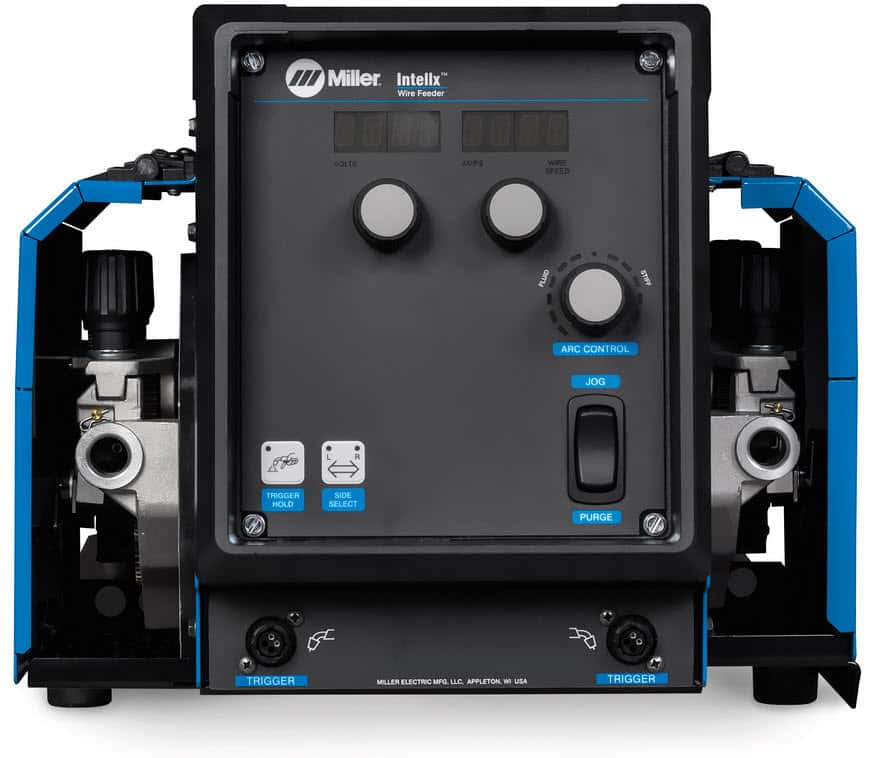 The Dual Intellx wire feeder comes complete with digital meters plus standard features like Arc control, for a smoother, more stable arc, wire jog and purge, and wire feed speed feedback. Dual-wire model allows two different wire types to be available on one feeder, avoiding downtime from changing spools and drive rolls.