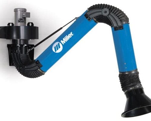 The Miller® FILTAIR® SWX-D Welding Fume Extractor with 7 foot arm is a wall or column mounted source capture system with disposable FilTek™ filter for extended filter life, increased efficiency and cleaner air. It is a stationary system that is intended for light duty or intermittent welding applications. Disposable MERV 15 rated filter traps 95% of all welding fume particulates. The SWX-D’s powerful motor and large bell-shaped hood combine to move 875 CFM (cubic feet per minute) of air. The system runs on standard 115V input power and is ideal for schools and training facilities, light manufacturing and fabrication shops.