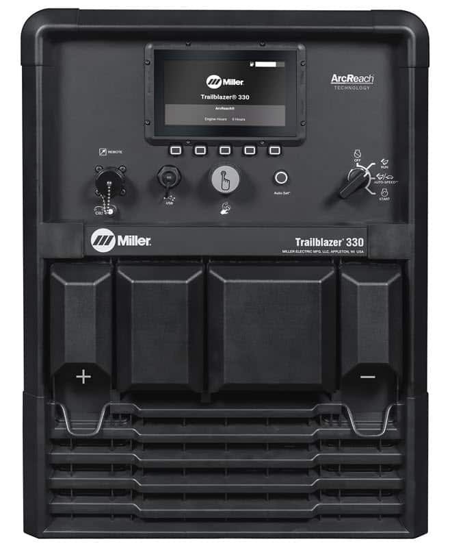 - ArcReach® standard on all models – ArcReach® technology uses the existing weld cable to communicate welding control information between a Miller® ArcReach® feeder or ArcReach® Stick/TIG remote and Trailblazer® 330.