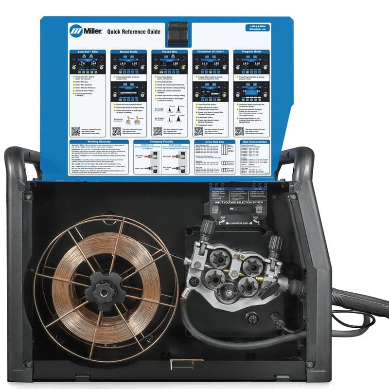 • Auto-Set™ Elite offers predefined weld settings to increase ease of use and ensure that the job is done right for operators of all skill levels. Available for MIG and pulsed MIG processes with the ability to fine-tune your settings. Set weld parameters by selecting wire and gas type, wire diameter and material thickness.